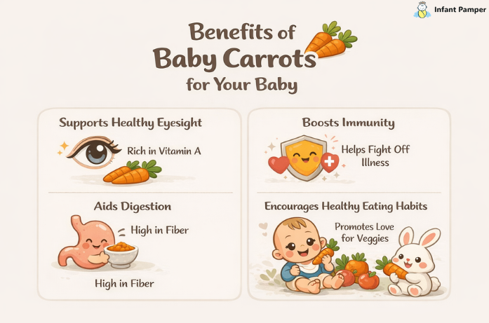 Baby carrots are packed with nutrients that support your baby’s development. They contain important vitamins and minerals that help your child grow stronger and healthier. One of the biggest benefits is vitamin A, which supports your baby’s eyesight and immune system.